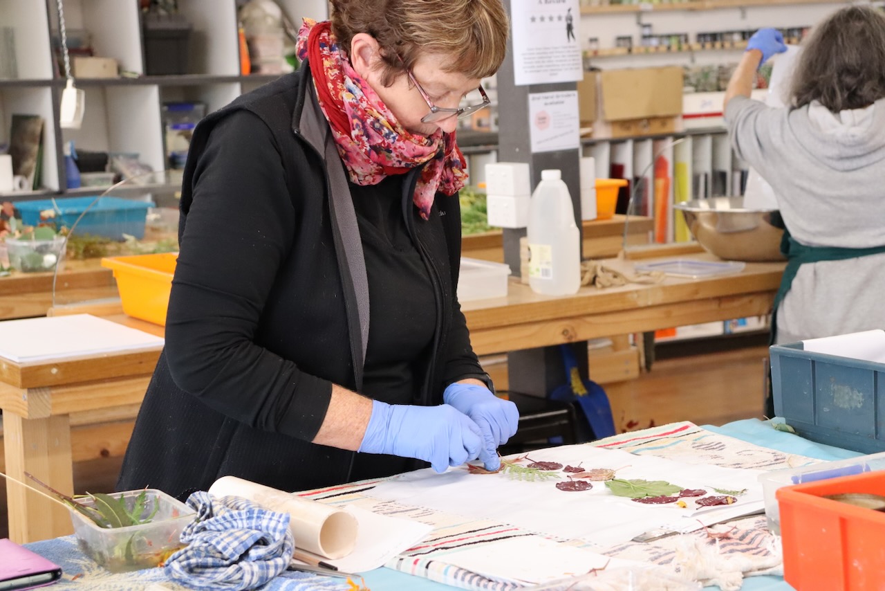 You will be taken through the whole process of eco-dyeing with demonstrations and hands-on experience of techniques, examples of different effects that can be created, and plenty of scope to start from basic techniques and then trial different plants, metals, and wrapping techniques.