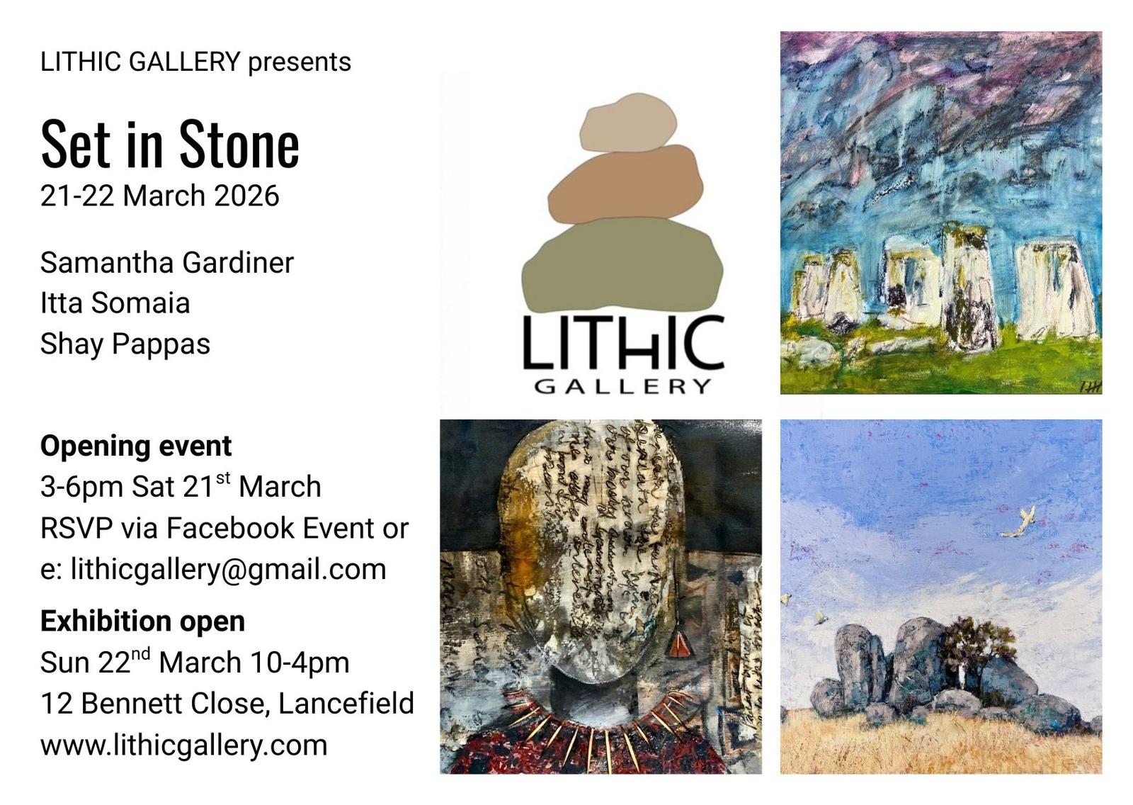 Lithic Gallery-Pop Up Exhibition- ‘Set In Stone’-Shay Pappas, Sam Gardiner, Itta Somaia