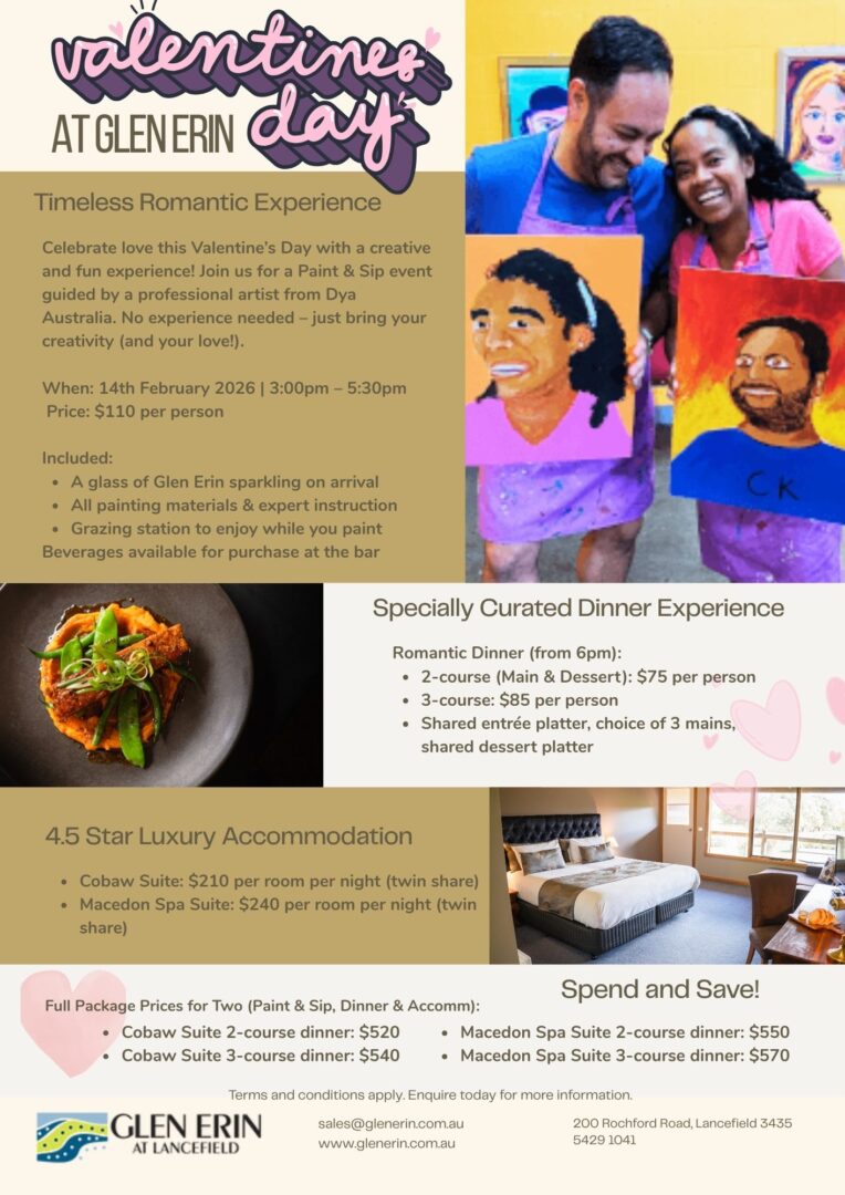 Celebrate love this Valentine’s Day with a creative and fun experience! Join us for a Paint & Sip event guided by a professional artist from Dya Australia. No experience needed – just bring your creativity (and your love!).