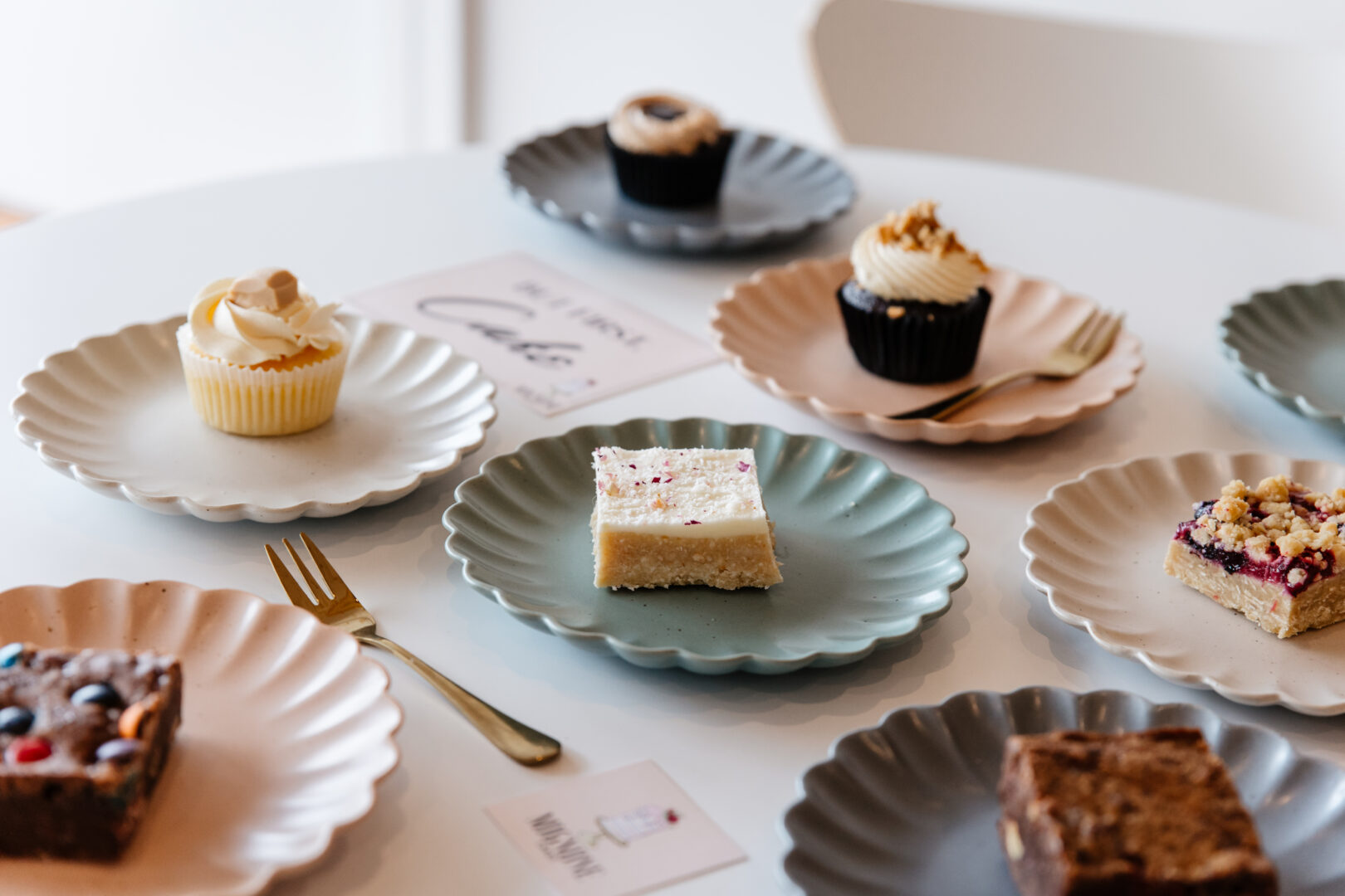 So how does it all work? We always have a selection of cakes by the slice, cupcakes, slices and cookies available for purchase each day. Flavours change day to day based on what is in season and what we feel like making that day- this keeps things interesting for everyone! Unlike big chains, nothing here is mass produced. Everything is made by hand and from scratch. We have different sized takeaway boxes for you if you are wanting to grab your treats on the go, or if you want to dine in, we have a few tables and chairs, plates and forks, and colouring sheets and pencils for your little ones so that everyone can enjoy their cake!